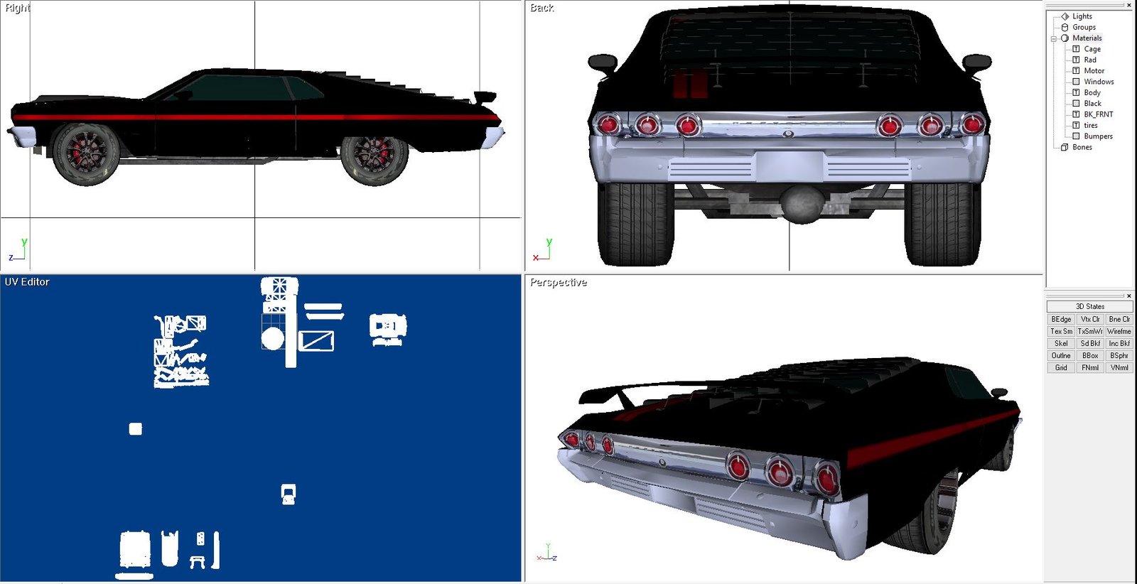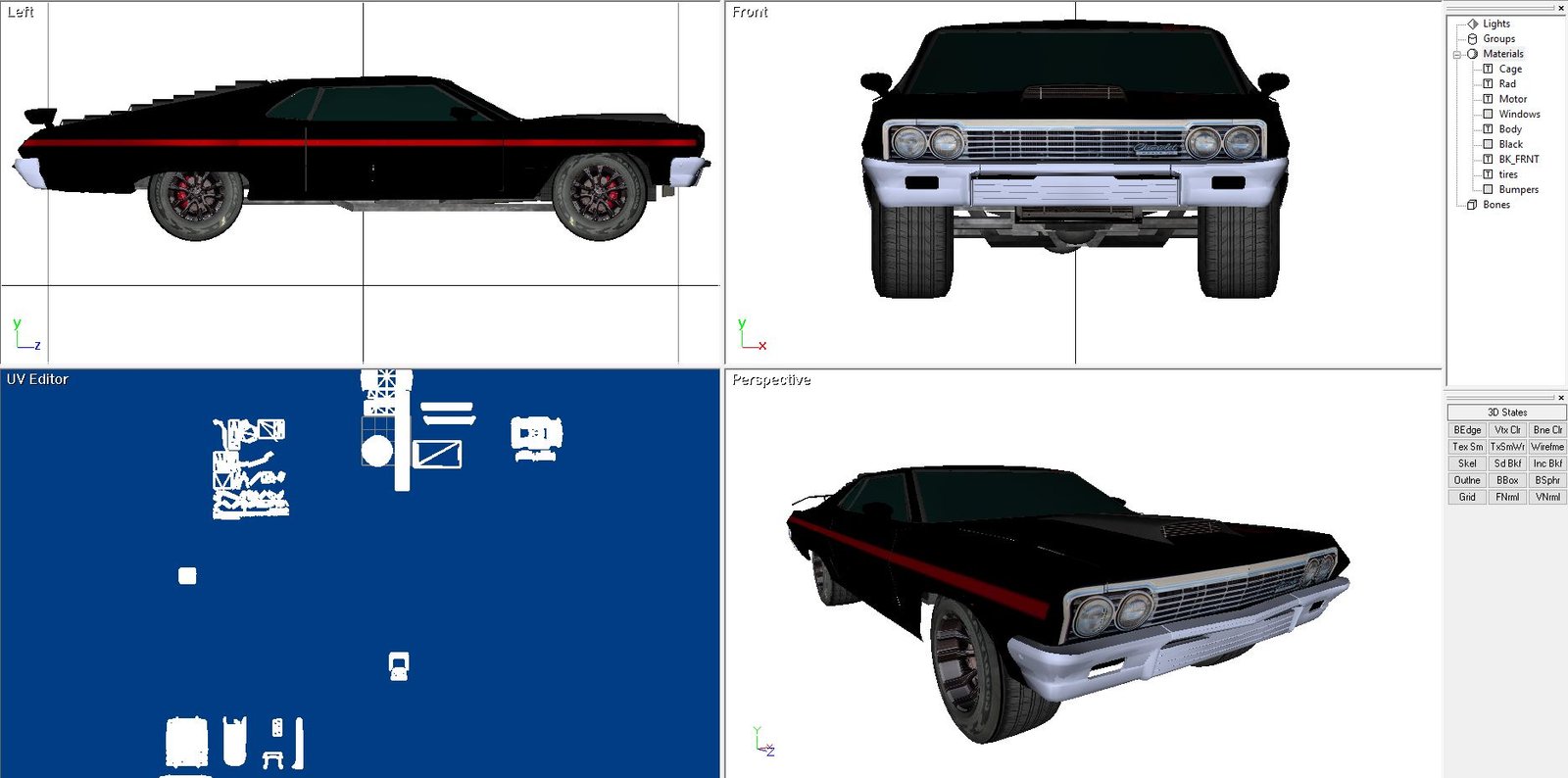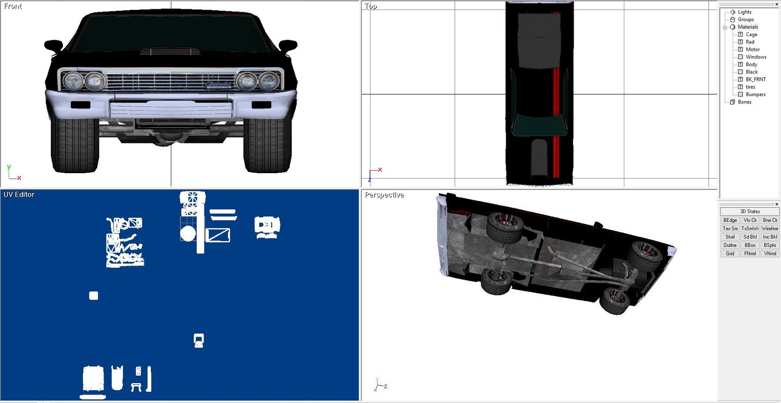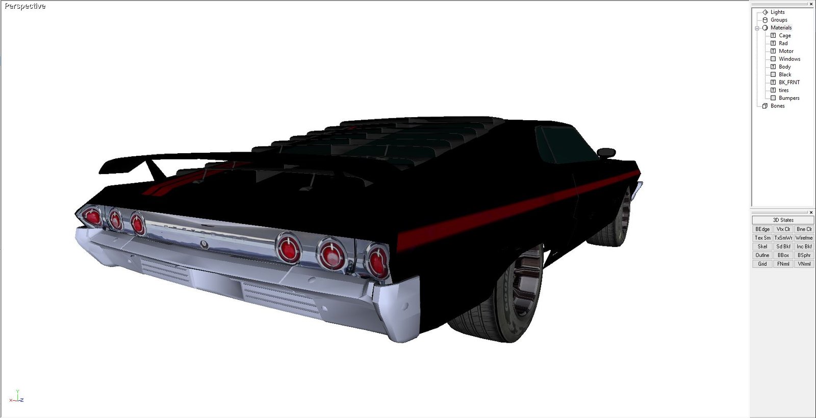 Building a car that never existed. This is a Chevy Impala fastback. Never produced in real life and i always wondered why that was. I suppose they built some close-enough models and called it good enough. So, I made one, albeit a model in Direct X.
