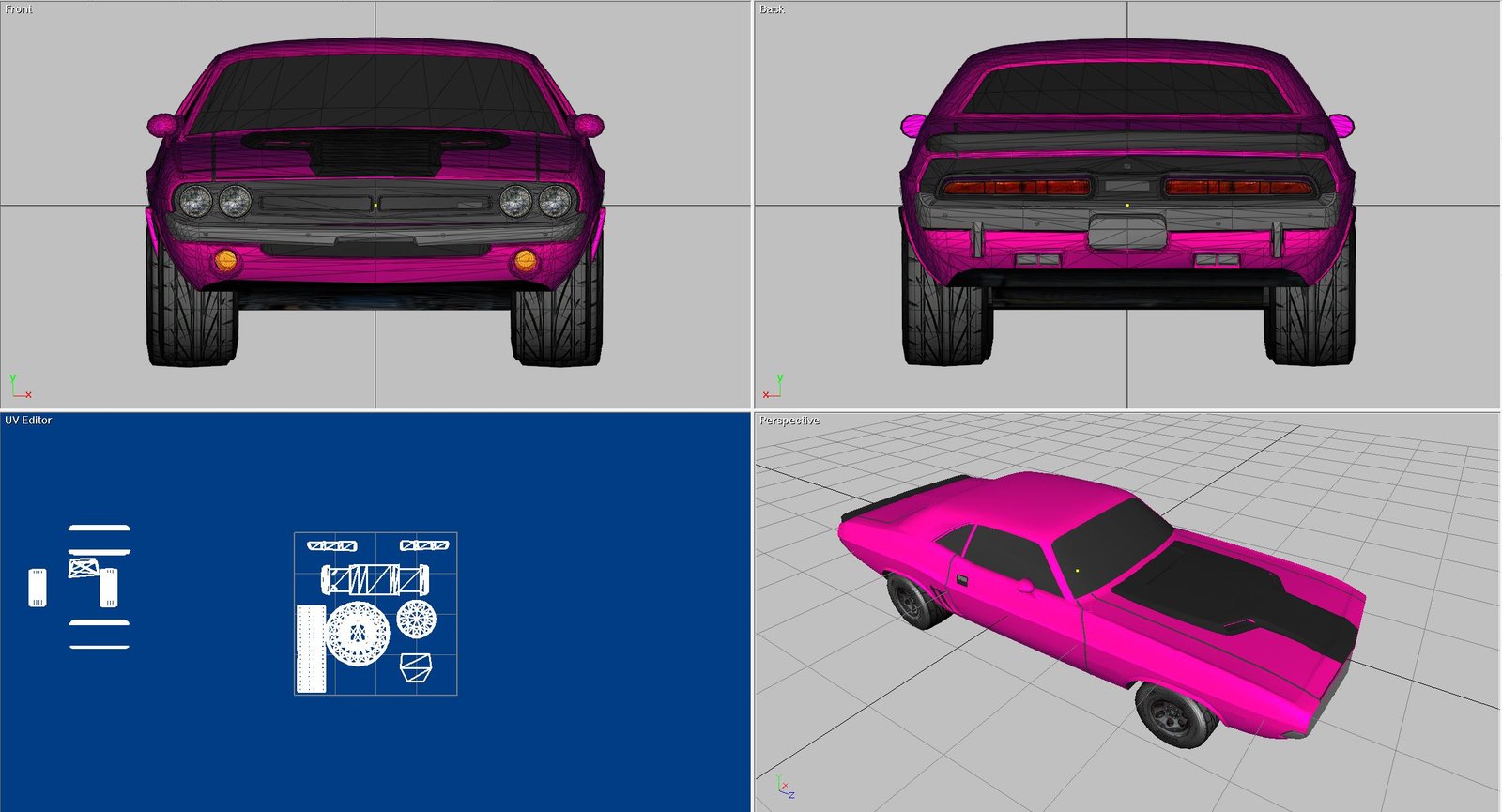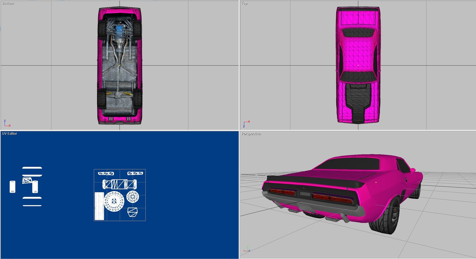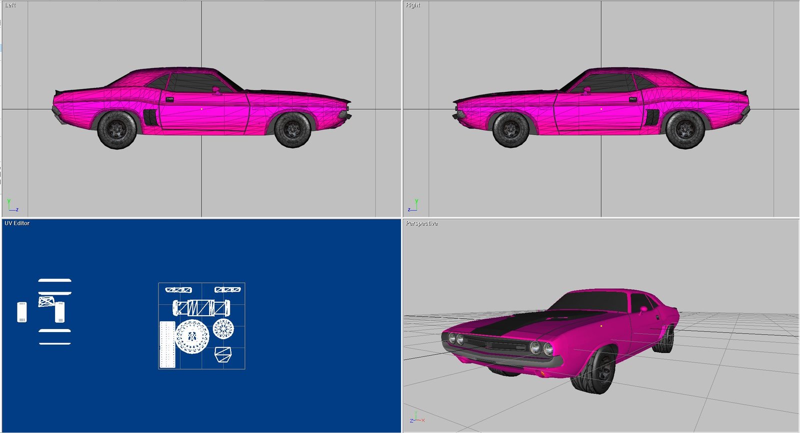 This is a 1972 Dodge Challenger build. This was built in direct x 9 and also rendered in 3DS, OBJ and FBX as well. The map work is also done to make the car present as shown in the images and the video. These were such a popular car in the early seventies. It seemed every high school kids with the rich daddies was driving one. I remember seeing the cars in hard-tops and convertibles driving around and parked in all the favorite late night parking spots…