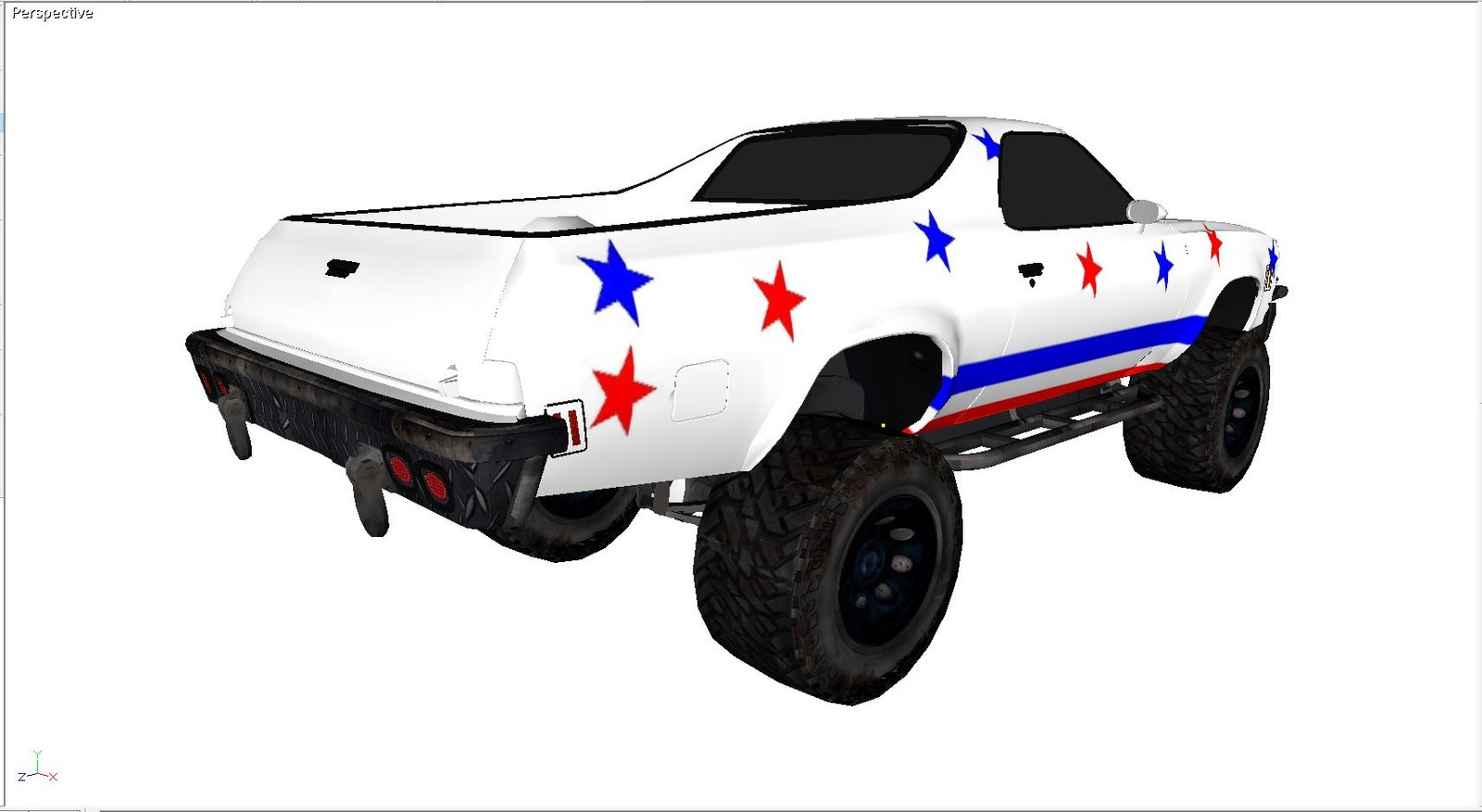 This is an El Camino type project. This is not to specs, none of my models are and I do that so there are no licensing issues. This is rendered in Direct X and it is compressed. This model includes three different versions available separately and includes all of the image maps and graphics to render the model as shown. Lifted El Camino 3D Model